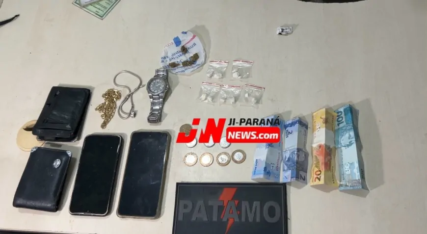 Em diligências nas imediações, os policiais também localizaram porções de substância semelhante à cocaína, embaladas e prontas para possível comercialização.