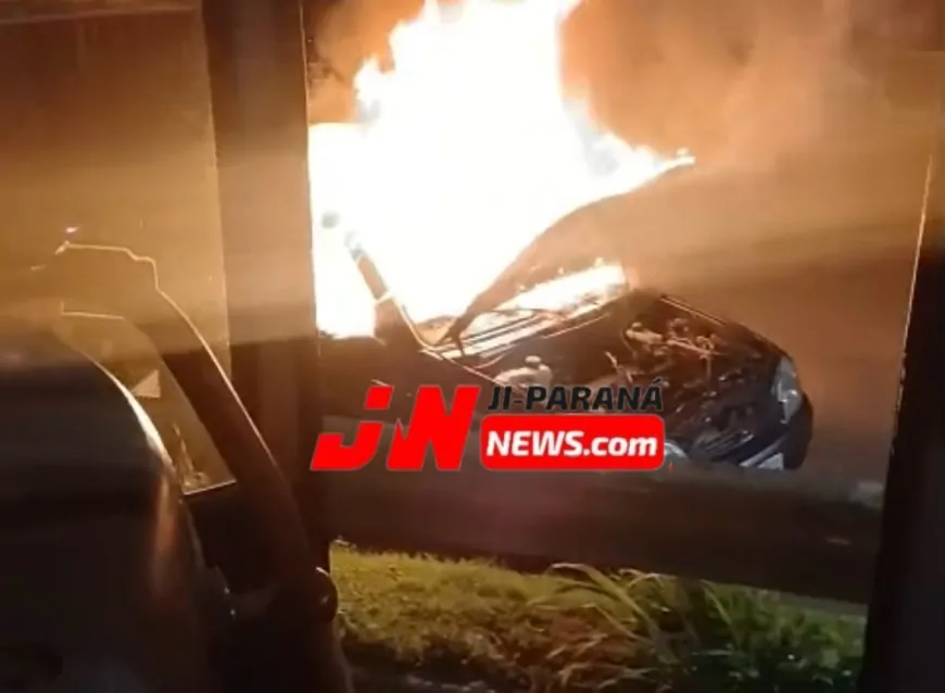 Um veículo foi completamente destruído por um incêndio na madrugada desta terça-feira (17), na Avenida Transcontinental, em Ji-Paraná.