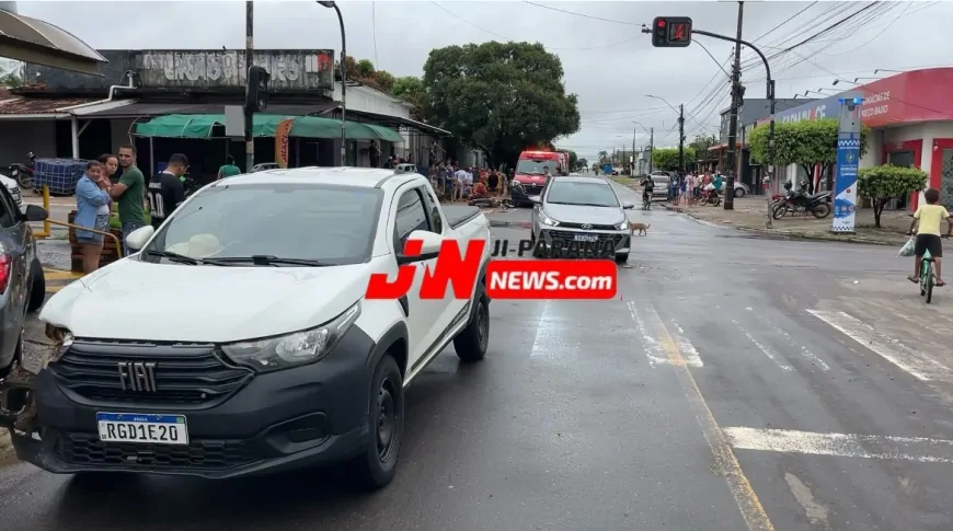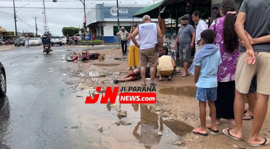 Um acidente registrado na tarde deste domingo (29) deixou um motociclista ferido em Ji-Paraná. A colisão aconteceu no cruzamento das ruas K-5 e T-23, um ponto conhecido pelo intenso fluxo de veículos.