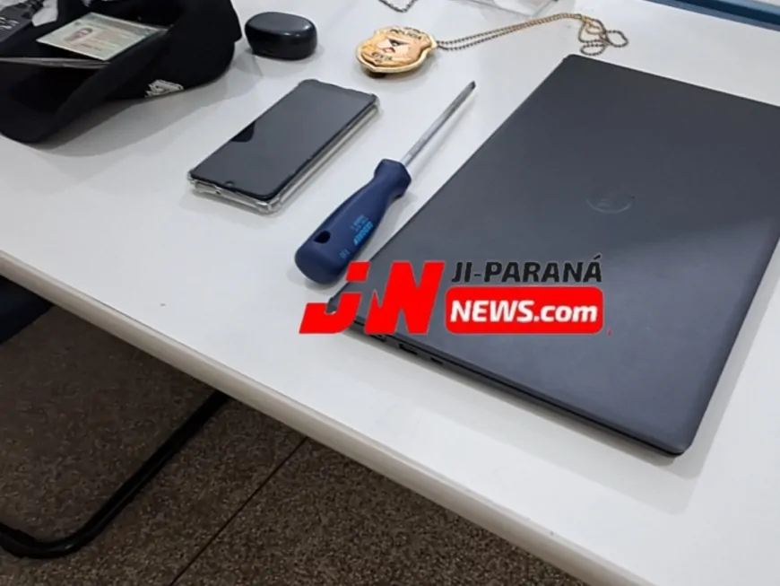 Com Tiago, os policiais encontraram o notebook furtado da caminhonete e a chave usada no arrombamento. O comparsa conseguiu fugir antes da chegada da polícia e continua sendo procurado.