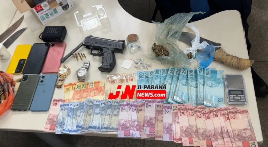 No interior da residência, foram encontradas diversas porções de drogas, incluindo crack, cocaína e maconha, já fracionadas para venda. Também foi apreendida uma balança digital, dinheiro em espécie e diversos celulares, que, segundo informações, eram utilizados no comércio ilícito.