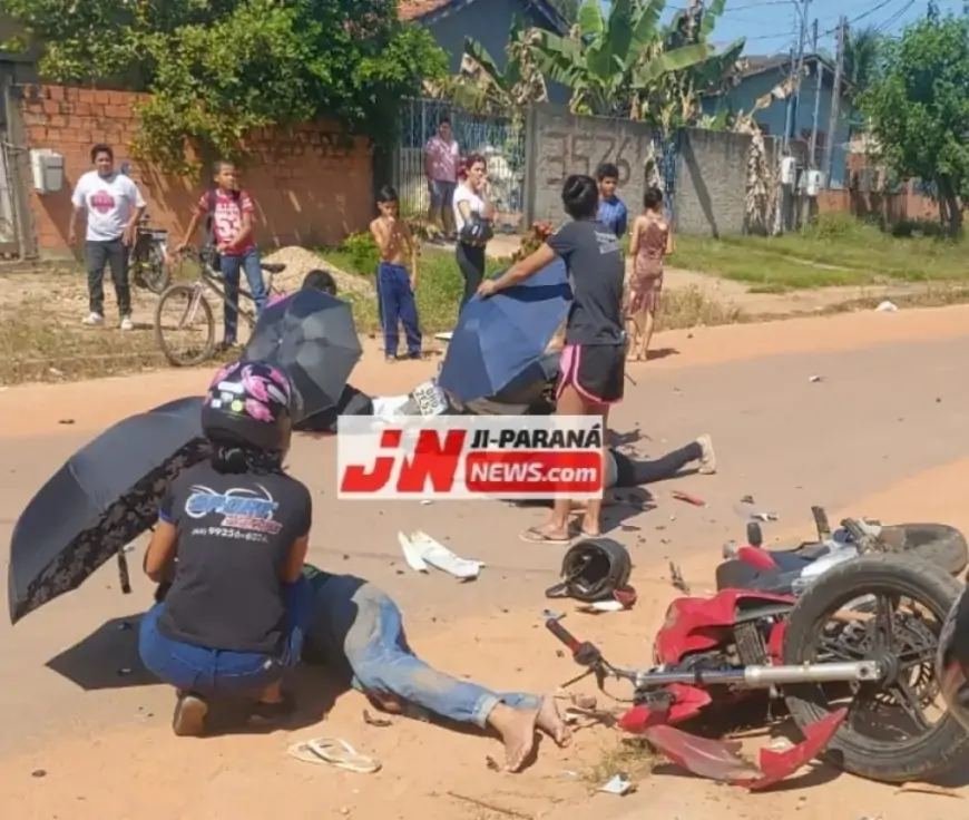 Na tarde de 16 de Maio, a Polícia Militar foi acionada para comparecer à Rua T-20, no bairro JK, após uma denúncia via 190 sobre um grave acidente de trânsito envolvendo duas motocicletas. Ao chegar ao local, a guarnição encontrou três vítimas caídas ao solo, todas recebendo os primeiros socorros do Corpo de Bombeiros.