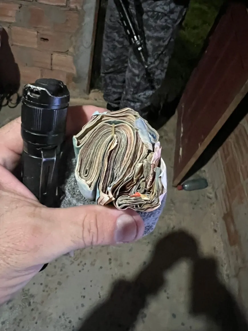 No interior do imóvel, também foi localizado dinheiro em espécie, totalizando R$ 1.101,00, escondido de forma incomum.