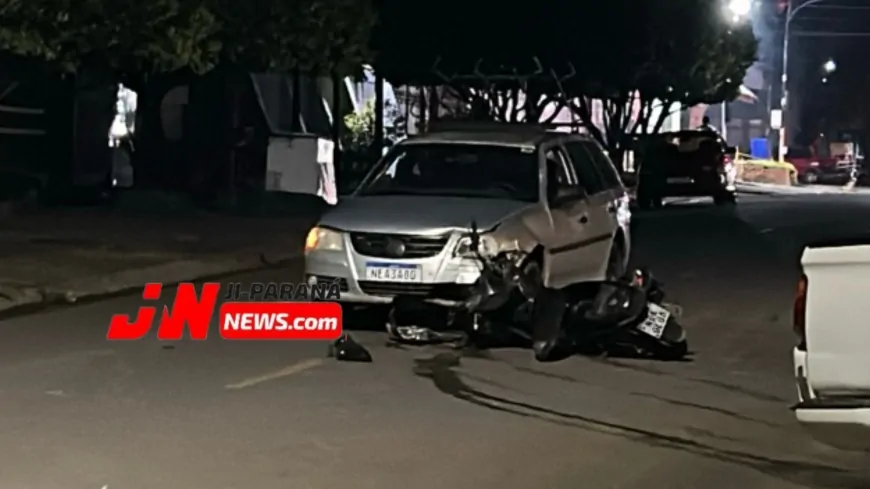 Um sinistro de trânsito envolvendo um carro e uma motocicleta foi registrado na noite desta terça-feira (08), na Rua Cedro, em Ji-Paraná, e resultou em uma pessoa ferida.
