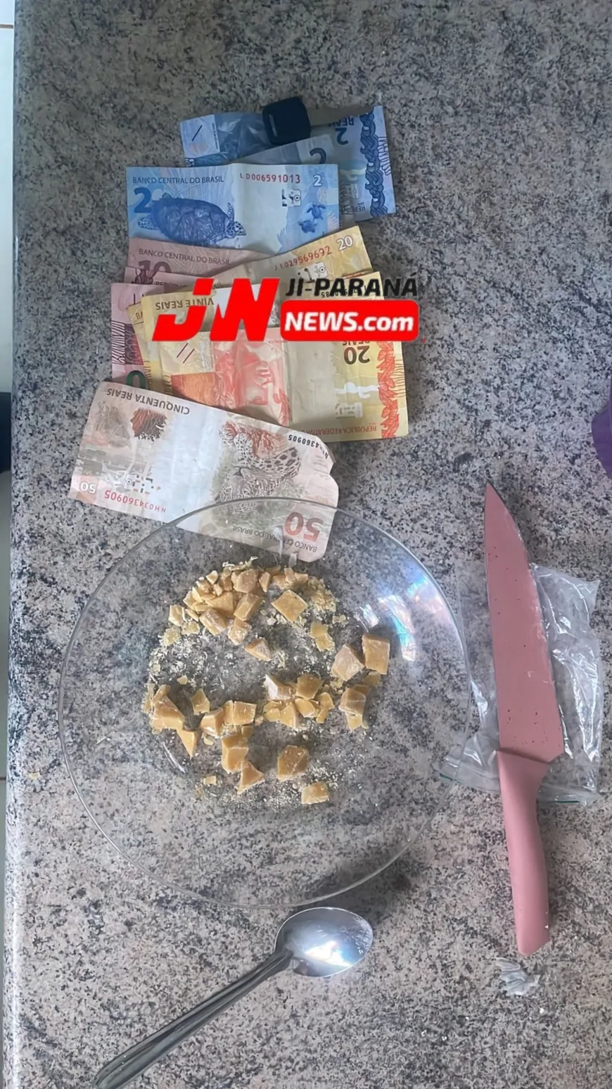 De acordo com informações, a operação foi conduzida pelos sargentos PM Teodoro e D. Moura, com apoio dos cabos PM Siqueira e Tupan. Ao chegarem ao local, os militares realizaram buscas na casa e encontraram 20 porções de substância semelhante à pasta base de cocaína, uma balança de precisão, duas munições e R$ 188,00 em espécie, quantia que seria proveniente da venda de drogas.